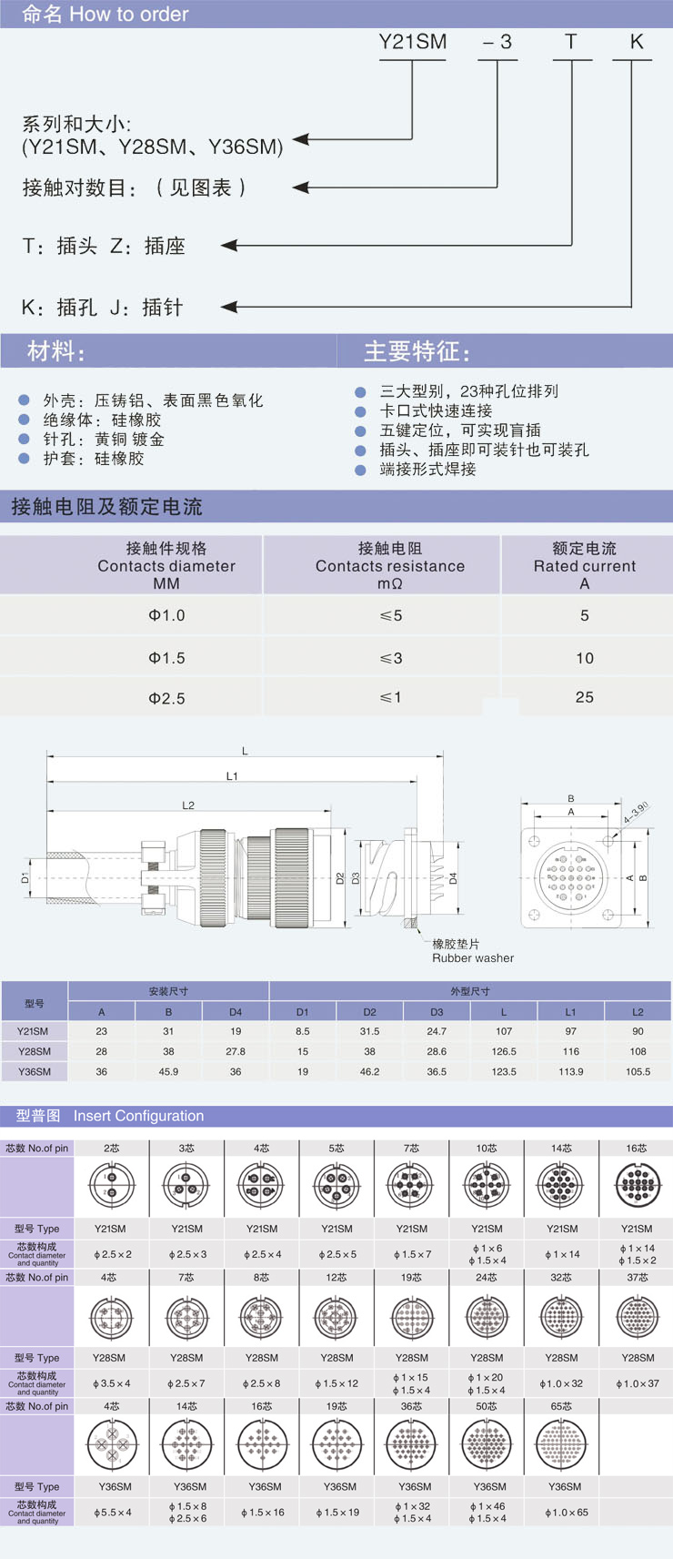 YSM系列產(chǎn)品是老式Y(jié)系列連接器的換代產(chǎn)品。YSM系列產(chǎn)品有三種安裝尺寸分別為21mm,28mm,36mm。不同的尺寸有不同的芯數(shù)。具有體積小、重量輕、使用方便耐插拔、導(dǎo)電性能佳、密封性能好、防水性能強的特點。廣泛應(yīng)用于電器設(shè)備、儀表、儀器之間的線路連接。