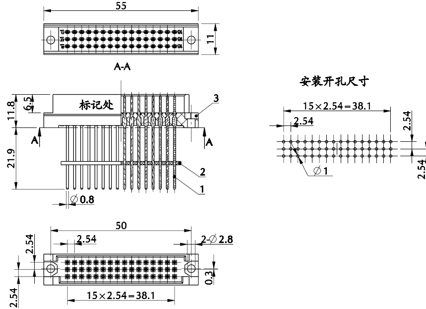 J18系列矩形電連接器是根據(jù)GJB1438A(MIL-C-55302)標(biāo)準(zhǔn)研制生產(chǎn),完全符合HB6382的技術(shù)要求,并參照IEC-603-2及DIN41612的標(biāo)準(zhǔn)要求。2.54mm標(biāo)準(zhǔn)網(wǎng)格間距設(shè)計,具有防誤插的編碼附件。有雙曲面線簧插孔接觸體結(jié)構(gòu),有浸焊,焊接,繞接等端接形式。該系列矩形連接器廣泛應(yīng)用于電子及無線電裝置中的電路連接。
